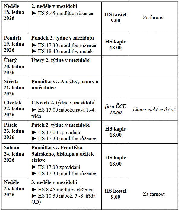 - Sbírka na biblický apoštolát se koná v neděli 25.1. Děkujeme všem dárcům.