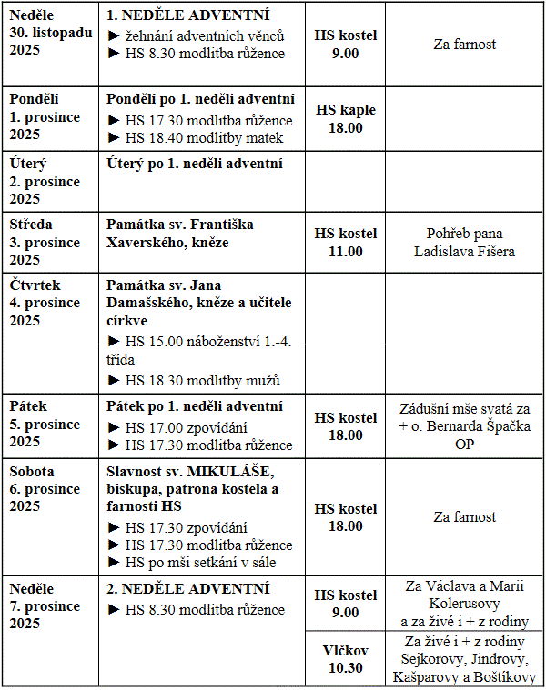 Program bohoslužeb ve farnostech České Heřmanice a Horní Sloupnice